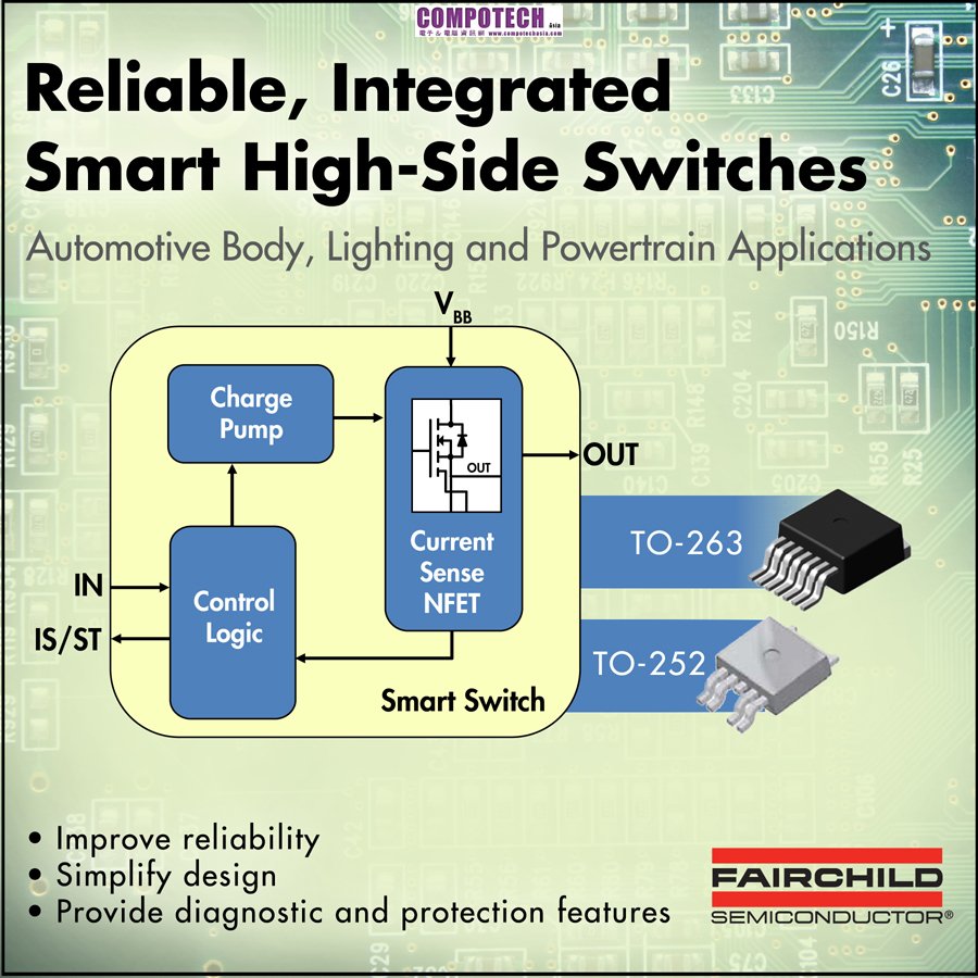 全球領先的高性能電源和可攜式產品供應商快捷半導體公司(Fairchild Semiconductor)開發出一款專門為汽車車身電子提供先進電氣負載控制的智慧型高側開關系列。該系列元件為離散式MOSFET設計提供替代方案,整合了保護和診斷功能,以減少元件數量,簡化印刷線路板設計,同時提高系統的可靠性。