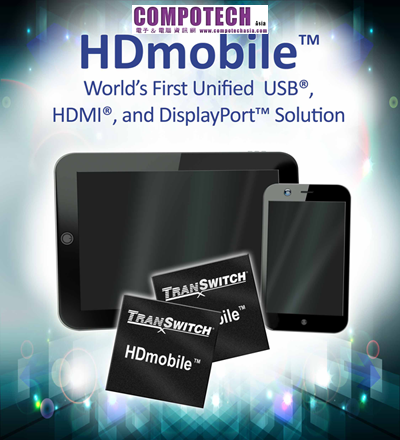 2012年5月8日----針對快速發展的消費電子和電信市場的半導體解決方案全球領先供應商美商傳威TranSwitch公司(納斯達克股票代碼:TXCC)今天宣佈推出了HDmobile(tm)收發器積體電路(IC)。美商傳威的HDmobile(tm) IC整合了USB、HDMI和DisplayPort介面,用一根電纜即可提供超高速資料連接和高清視訊傳輸功能。HDmobile(tm) 用世界一流的整合技術將行業領先的性能結合在一起,特別適合智慧手機和平板電腦等空間緊湊和注重節電的行動應用。