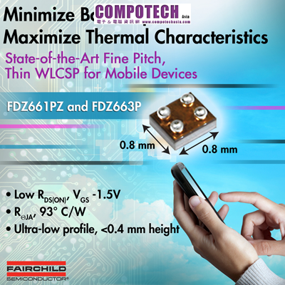 2012年5月15日--可攜式裝置的設計人員面對終端應用需要節省空間、提高效率和應付散熱問題的挑戰。為了順應這一趨勢,快捷半導體公司(Fairchild Semiconductor)開發出FDZ661PZ和FDZ663P P通道、1.5V專用PowerTrench®薄型0.8mm x 0.8mm WL-CSP MOSFET元件。