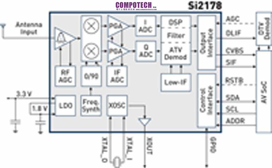 2012年6月26日 - 高效能類比與混合訊號IC領導廠商Silicon Laboratories (芯科實驗室有限公司, NASDAQ: SLAB)今日宣佈推出新一代電視調諧器系列產品Si21x8,該產品提供卓越的射頻效能,支援全球所有電視標準,並實現最低的物料成本。新型Si21x8系列基於第四代專利架構技術,具備最先進的電視調諧器技術。Si21x8系列產品提供五種電視調諧器選擇,可最佳化混合類比/數位iDTV、單一類比或數位電視、可攜式電視、DVD和藍光錄影機、地面以及有線機上盒(STB)等設備。