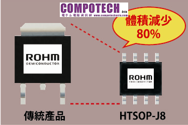 採用HTSOP-J8封裝,體積比傳統產品縮小80% (6.0mm×4.9mm H=Max 1.0mm)