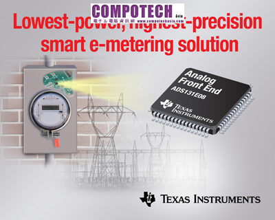 2012 年 7 月 23 日--德州儀器 (TI) 宣佈推出支援智慧電子電表 (smart e-meters) 電源監控與控制的全新系列類比前端 (AFE)。最新 ADS131E08 系列支援 8、6 或 4 通道以及 16 或 24 位元解析度。這些裝置不僅提供高整合度與高效能,並可支援業界最低單位通道功耗與最寬升級/降級路徑。詳細產品資訊,請參見網頁:www.ti.com/ads131e08-pr。