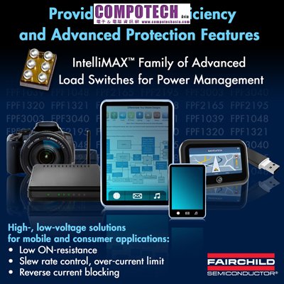 智慧型手機、平板電腦、數位相機及其它消費性電子產品等高度複雜的行動產品需要順暢的電力管理和電池開關,以提高靈活性和電池可靠性。快捷半導體公司(Fairchild Semiconductor)的IntelliMAXTM系列先進負載管理開關能夠協助設計人員提高系統保護能力,降低設計複雜性,同時達到更高的系統功率和可靠性。