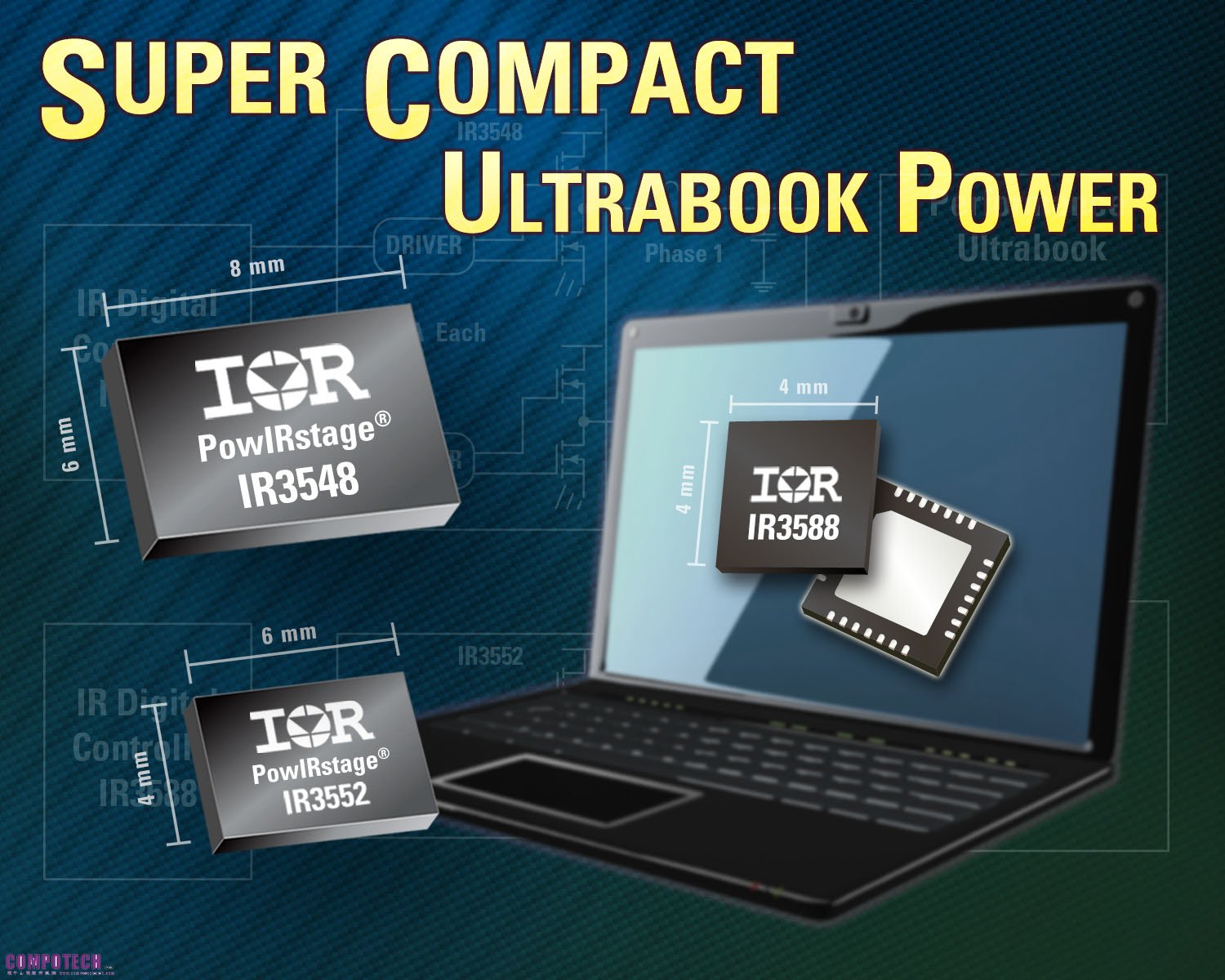 2012年8月28日--全球功率半導體和管理方案領導廠商 – 國際整流器公司 (International Rectifier,簡稱IR) 推出IR3588 CHiL數位控制IC,以及IR3552 與 IR3548單、雙相位PowIRstage元件,藉以提供業界最小佔位面積的解決方案,致力滿足英特爾(Intel) 針對15W和25W Ultrabook筆記型電腦的VR12.6規格的需求,有助於大幅延長電池壽命。