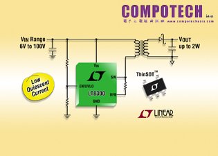 012年8月29日 – 凌力爾特(Linear Technology Corporation ) 日前發表低靜態電流完整返馳穩壓器LT8300,該元件可大幅簡化隔離式DC / DC轉換器的設計。由於輸出電壓是透過一次側返馳訊號感測,因此無需光耦合器、第三繞組或訊號變壓器來進行回授。 LT8300可操作於6V至100V的輸入電壓範圍,並具有260 mA、150V電源開關,同時提供高達2瓦的輸出功率,因此是各類型電信、資通訊、汽車、工業和醫療應用的理想選擇。
