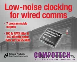 2012 年 9 月 4 日--德州儀器 (TI) 宣佈推出業界最高彈性的高度整合時脈抖動清除器 (cleaner) / 乘法器 (multiplier),充分滿足有線通訊與測試測量應用需求。該 LMK04906 提供三組支援維持功能 (holdover feature) 的冗餘輸入 (redundant input),及七組可程式設計輸出。其高度彈性幫助設計人員免除如振盪器 (oscillator) 與時脈緩衝器 (clock buffer) 等外部元件設計,大幅降低物料清單 (BOM) 成本,節省電路板空間。此外,透過業界領先的 100 fs RMS 抖動及 -160 dBc/Hz 雜訊基準 (floor) ,LMK040906可提升高速資料通訊系統的訊號完整性。詳細產品資訊或訂購樣品,請參見網頁:http://www.ti.com/lmk04906-pr-tw。