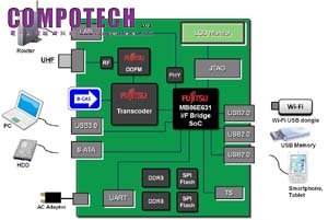 富士通半導體提供搭載MB86E631和自家轉碼器LSI 的參考機板。可與DLNA相容的參考機板支援Linux作業系統,亦為Wi-Fi電視調諧器產品提供解決方案,讓客戶能輕鬆開發相關產品。