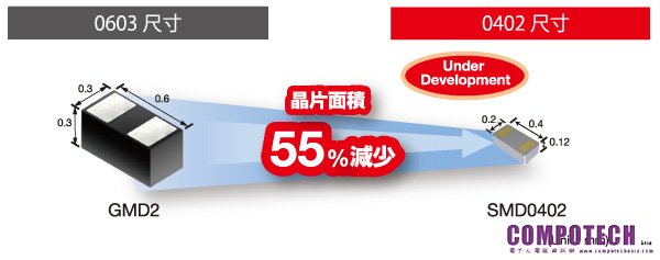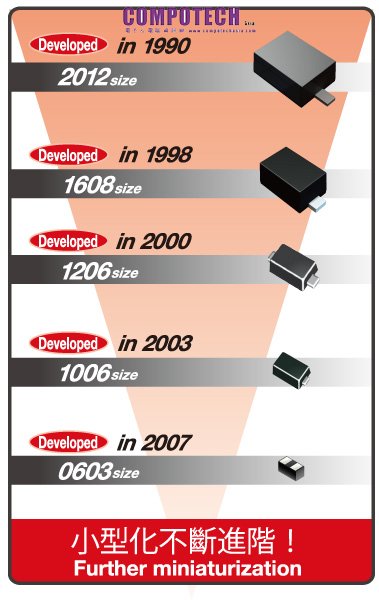 近年來,隨著智慧型手機需求量與日成長,功能日趨高階,零件用量亦隨之增加,市場上對於能夠以高密度安裝的超小型零件之需求日殷,就電阻器或電容器等被動元件來說,目前市面上已研發出0402尺寸產品,並搭載於裝置中使用,然而,像是二極體或電晶體等半導體產品,其結構比被動元件複雜得多,目前做到0603尺寸已是極限。