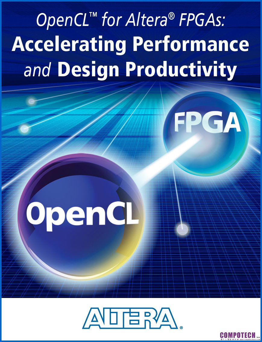 OpenCL是一種開放的、免權利金,可用於包括CPU、GPGPU與FPGA、硬體加速器等跨平台平行編程標準。Altera OpenCL軟體開發套件為硬體與軟體開發提供一種具一致性、高階的設計流程,可將典型的硬體設計語言(HDL)流程中的耗時工作加以自動化。OpenCL工具流程可自動地轉換OpenCL核心功能到客製化的FPGA硬體加速器中,增加介面矽智財(IP)、建立互聯邏輯與產生FPGA編程檔案。軟體開發套件包括在CPU中進行主程式執行時,可連結到OpenCL應用程式介面(API)呼叫的函式庫,透過自動化地掌控這些步驟,設計人員能夠更專注他們的開發精力在定義與疊代他們的演算法則,而不是花時間在設計硬體。