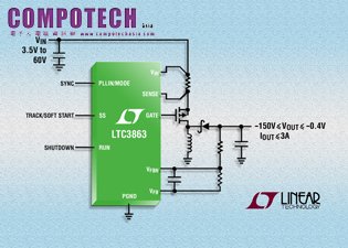 LTC3863可驅動外部 P通道MOSFET,其可操作於50kHz 及 850kHz間的可選式固定頻率,並可同步化至頻率介於75kHz 至 750kHz的外部時脈。電流模式架構更提供簡易的迴路補償及快速的瞬變響應、週期對週期過電流保護及卓越的線性穩壓。輸出電流感測可透過量測橫跨感測電阻的壓降達成。其它特性包括可設定的軟啟動或追蹤、過壓保護、過電流及短路保護、電源良好訊號及針對鄰近針腳開路及短路的FMEA (失效模式及效應分析) 驗證。