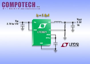 2013年4月10日–凌力爾特 (Linear Technology) 日前發表高效率、 17V 輸入同步降壓穩壓器LTC3621, 該元件可提供1A 連續輸出電流至低於0.6V的輸出。同步整流提供高達95%的效率,而 Burst Mode® 操作時只需3.5µA的無負載電流。 LTC3621可切換於固定的1MHz 頻率,而 LTC3621-2 則可切換於 2.25MHz。定頻電流模式架構可將切換雜訊降至最小,並同時提供快速的線性及負載瞬變響應。LTC3621/-2可操作於2.7V 至17V的輸入電壓範圍,使其適用於單顆 / 雙顆鋰電池應用和12V中間匯流排及汽車系統。結合2mm x 3mm DFN 或 MSOP-8 封裝高切換頻率及極小、低成本的電容及電感,造就非常精小的layout面積。