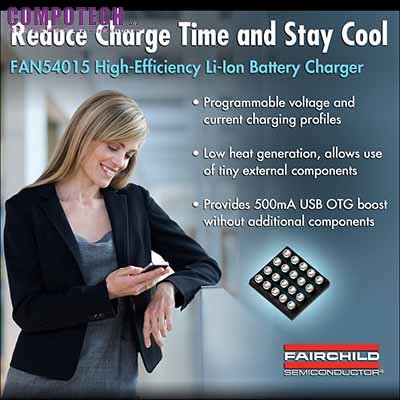 快捷半導體公司(紐約證交所代號: FCS) 的 FAN54015,是一款符合 USB 標準的單體鋰離子電池開關充電器,為設計者提供安全性、精確性、高效性及解決方案規模之間的平衡,用於為行動裝置電池充電。