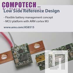 奧地利微電子的智慧電池感測器(IBS)設計適用於監測最新磷酸鐵鋰汽車電池以及傳統AGM (鉛酸)電池的電量狀況(SOC)以及電池安全狀況(SOH)。IBS的測量前端採用AS8515,能精確、即時地測量電池的電流和電壓、電路板的溫度,並將這些資料輸出為數位信號。測量資料由富士通ARM Cortex-M3微控制器進行處理,為任何類型的12V電池帶來準確的讀數。
