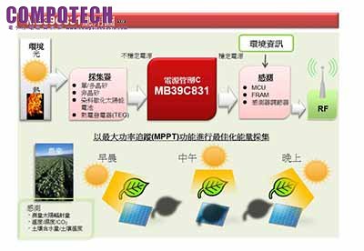 同步整流DC/DC的MB39C831升壓轉換器則能自動偵測周圍環境變化,儲存從不同環境中採集的能源,並將之轉為電能。例如根據環境光源的變化來採集電能,或依環境溫度的變化來採收集熱能;另外也能從單節或多節太陽能電池以及熱電發電器獲取電力,有效地為鋰離子電池進行充電。MB39C831內建最大功率追蹤(MPPT)功能,可追蹤採集器中因光和溫度變動而改變的最大功率點,進而採集最大功率。MB39C831還具備保護功能,確保鋰電池充電安全。由於MB39C831的低壓電路設計,僅需0.35V即可啟動系統,適用於無線感測網路等大範圍的應用(圖3)。
