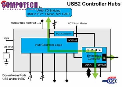 2013年6月4日--全球領先的微控制器、混合訊號、類比零件暨快閃技術供應商Microchip Technology,宣佈利用其近期收購SMSC公司後,進一步擴展 USB2控制器集線器(UCH2)產品組合。這三個系列的七款全新UCH2 IC是全球第一款提供了可程式設計功能的USB2控制器集線器,讓PC和行動設備開發人員無需外部記憶體即可配置其設計。此外,這些元件也是Microchip的第一款支持USB2和USB高速晶片間(HSIC)連接的UCH2,通過鏈路電源管理 (LPM) 等低功耗模式,最大限度地延長了電池壽命,並能夠替代具有BC1.2、Apple®、SE1和中國充電電源等高階電池充電模式的AC插座式充電器。對於需要多個協定通信的應用,這些UCH2具有直接I/O,橋接至I2C™、SPI、UART和通用I/O。它們還可以靈活地支援多種作業系統,如供應商特定消息和簡單埠逆轉的FlexConnect。