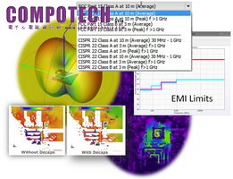 利用EMPro 2013,工程師可模擬電子電路和元件之輻射情形,進而確定所產生的輻射量是否符合通用電磁相容性(EMC)標準的規範,例如FCC Part 15、CISPR 22和MIL-STD-461F,這個功能是由提供新的標準相符性樣板,以及增強的EMPro有限元素法(FEM)和時域有限差分法(FDTD)模擬器。