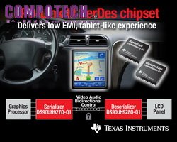 該晶片組支援高頻寬數位內容保護 (HDCP),並支援與 LVDS 輸入及直接連接顯示螢幕,包括 LVDS 數位介面 (OpenLDI) 標準,可將訊號線路減少 68%,還支援差動訊號,可最大限度減少 EMI。與同類解決方案相比,TI FPD-Link 系列可直接連接系統架構中更大量的視訊影片至汽車視訊網路。
