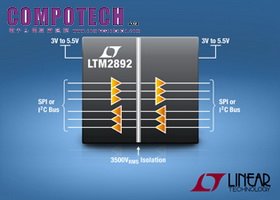 2013年8月1日--凌力爾特 (Linear Technology Corporation)日前發表用於3.3V到5V系統的6通道SPI/數位或I2CµModule®(微型模組)隔離器LTM2892。由於接地電位系統可產生差異,甚至超過共模操作限制,其可能中斷通訊、損壞元件,甚至造成危險的情況, LTM2892透過橫跨電隔離屏障的通訊斷開接地迴路,其會針對達3,500VRMS的電位差阻斷DC電流,以提供安全、不間斷的運作。 LTM2892無需外部元件,為隔離數據通訊提供了一個小型、簡單的µModule解決方案。