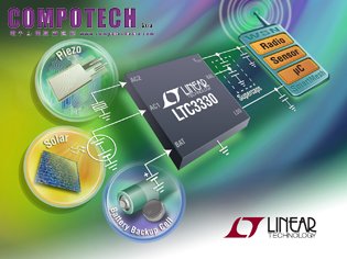 LTC3330的能源採集輸入可操作於3V至19V電壓範圍、及AC 或 DC,因此使其非常適合廣泛的壓電、太陽能或磁源。 輸入欠壓鎖住門檻可設定於3V和18V之間,使應用可於其峰值功率傳輸點操作能量採集來源。其他功能包括可編程的DC / DC和LDO輸出電壓、升降壓峰值電流限制、超級電容充電器/平衡器和輸入保護分流(於VIN >20V時高達25mA)。