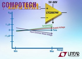 2013年8月26日--凌力爾特(Linear Technology)日前發表零漂移放大器LTC2057HV,此元件具有自我校準電路,可在溫度、時間,輸入範圍和電源電壓變化時提供高DC精度和穩定性。LTC2057HV具備 5µV輸入補償電壓,0.025µV/°C補償漂移和220nVP-P 無1/f 雜訊的低頻雜訊,提供140dB 以上的動態範圍,同時可操作於60V(±30V)電源。此寬廣的動態範圍,使微小的訊號在更大訊號出線時還是可被放大,而不會產生放大器飽和或損失精度。較低電源版本LTC2057亦可針對需要供應電壓達36V的應用提供最佳方案。