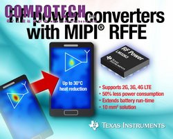 2013 年 9 月 2 日--德州儀器 (TI) 宣佈推出業界首批用來整合 MIPI 聯盟射頻前端 (RFFE) 數位控制介面規範的 RF 電源轉換器,可簡化多頻帶多無線電通訊。高效率 LM3263 降壓轉換器和 LM3279 升降壓轉換器可顯著降低 RF 功率放大器的散熱及功耗,不僅可延長電池使用壽命,還可延長通話時間,充分滿足 2G、3G 以及 4G LTE 智慧型手機、平板電腦以及數據卡的應用需求。有關如何滿足 RFFE 介面的電源需求詳情,歡迎觀看Engineer It影片。如欲訂購樣品,敬請參訪:www.ti.com/lm3263-pr。