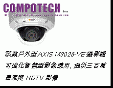 2013年9月23日--全球網路影像領導廠商 ─ 安迅士網絡通訊公司(Axis Communications) 日前發表AXIS M3026-VE網路攝影機,其可以106度水平視角提供三百萬畫素與HDTV 1080p影像,該款攝影機擁有可自動切換的紅外線濾鏡(infrared-cut filter),其可讓攝影機在白天擷取彩色影像,並可在低光照使用紅外光時依然呈現高品質黑白影像。