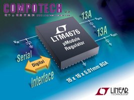 2013 年9月25日--凌力爾特 (Linear Technology Corporation)日前發表雙組13A或單組26A的μModule®(微型模組)降壓DC/ DC穩壓器LTM4676,元件具備串列數位介面,使系統設計者和遠端作業人員可指揮和監督系統的電源和消耗狀況。數位化改變電源參數的能力,可透過排除需物理硬體、電路和/或系統物料成本修改的歷史性因素來縮短上市時程及停機時間。 LTM4676可於原型塑造、部署及現場操作期間簡化系統特性描述、最佳化和資料挖掘。