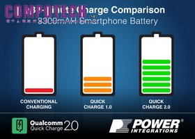 2013 年 10 月 18 日-- Power Integrations (Nasdaq:POWI) 這家節能功率轉換之高壓積體電路領域的領導廠商今日宣佈推出第一款配備 Qualcomm® Quick Charge 2.0 之充電器電源供應器的參考設計。在今年初推出的 Quick Charge 2.0 通訊協定是由 Qualcomm (Nasdaq:QCOM) 所開發,相較於傳統 USB 功率傳輸技術,可讓行動裝置 (例如平板電腦或手機) 的充電速度提高達 75%。