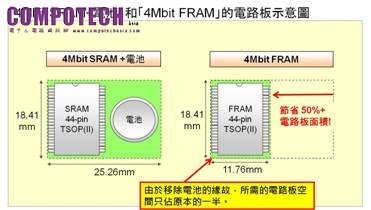 MB85R4M2T不需要透過電池儲存資料,因此能減少50%以上產品中所使用PCB基板記 憶體與相關零件的電路板面積。