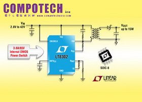 2013年11月14日--凌力爾特 (Linear Technology Corporation ) 日前發表一款完整返馳穩壓器 LT8302,該元件可大幅簡化隔離式DC / DC轉換器的設計。透過由一次側返馳波形直接取樣隔離輸出電壓,可無需光耦合器或第三繞組進行穩壓。 LT8302可操作於2.8V至42V的輸入電壓範圍,並具有3.6A/65V電源開關,同時提供高達15瓦的輸出功率,因此是各類型工業和醫療、資通訊、軍事與汽車應用的理想選擇。