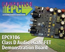 EPC9106演示板含EPC2016氮化鎵場效應電晶體及德州儀器公司的100 V半橋柵極驅動器(LM5113)。該板展示了使用具備高頻開關性能的氮化鎵場效應電晶體並配備專有驅動器LM5113,可以實現小尺寸、高音質的理想效果。EPC9106演示板的設計由於高效,因此可以完全不用散熱器,因此也可以減低發生EMI/EMC發射的機會。