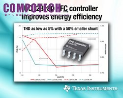 - 最低功耗:由於電流感測臨界電壓 (current sense threshold) 較低,PFC 控制器便能使用更小的分流電阻器,因此與前代產品相比,不僅功耗銳降 50%,同時還可保持低 THD;