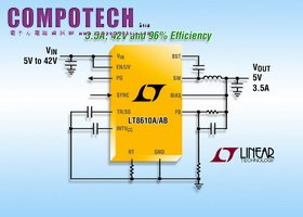 LT8610A及 LT8610AB 擁有與LT8610相同的所有效能及特性,同時還具有更多改良功能。首先,其提供了 3.5A 的連續輸出電流, 而 LT8610則為 2.5A。其次,其最短導通時間從50ns降至30ns,因此可於2MHz達到 16V 至1V 的降壓轉換,標準的LT8610 則為1.8V 。所有其他電氣參數均與標準LT8610相同。