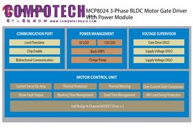 2013年12月05日--全球領先的微控制器、混合訊號、類比零件暨快閃技術供應商Microchip Technology,宣佈推出一款帶電源模組的新型三相BLDC馬達驅動器 MCP8024。該元件能夠為dsPIC®數位信號控制器(DSC)和PIC®微控制器 (MCU) 供電,同時驅動六個N通道MOSFET。客戶可以實現更佳性能和更高的穩定性,同時提高效率、降低系統成本,並縮短產品上市時間。