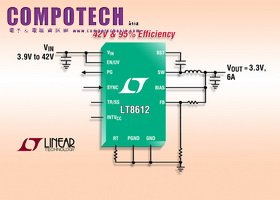 2014年2月7日--凌力爾特日前發表6A、42V輸入同步降壓切換穩壓器LT8612。其同步整流提供高達95%的效率,Burst Mode®操作則可在無負載待機狀態下保持低於3µA的靜態電流。3.4V至42V輸入電壓範圍使其成為汽車和工業應用的理想選擇。內部高效率開關可提供高達6A的連續輸出電流至低如0.97V的電壓。 LT8612的Burst Mode操作提供超低靜態電流,使其適合如汽車“always-on”系統等需要延長電池壽命之應用領域。該元件的獨特設計可在所有條件下保持僅250mV(@3A)的最小壓差,是因應如汽車冷啟動情況之理想選擇。此外,只需40ns的快速最短導通時間可使2MHz的定頻從16V輸入切換至1.5V輸出,確保設計者能在最佳化效率的同時並避開嚴苛的雜訊敏感頻段。LT8612的28接腳3mm x 6mm QFN封裝和高切換頻率,可維持小型的外部電感和電容,提供精小及具高散熱效益的接腳佔位。