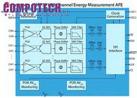 2014年2月18日--全球領先的微控制器、混合訊號、類比零件暨快閃技術供應商Microchip Technology,宣佈推出具備業界領先精度的新一代電能計量類比前端(AFE)產品系列。全新的MCP3913和MCP3914系列分別整合了6和8個24位元Δ-Σ 類比數位轉換器(ADC),具備94.5 dB的SINAD(信納比)、-106.5 dB的THD(總諧波失真度)和112 dB的SFDR(無雜波動態範圍),適用於高精度訊號收集和更高性能的終端產品。其中,MCP3914額外多出兩個ADC,增加了單一晶片所能監控的感測器數量,有助於降低產品成本和縮小設計尺寸。此外,高達125 ksps的可程式設計資料速率及低功耗的模式使得設計人員可以通過縮小產品尺寸來降低功耗,或使用更高的資料速率來進行諸如計算諧波含量等高階的訊號分析。同時,新推出的AFE系列還擁有CRC-16校驗及暫存器映射鎖定功能,大大提高了產品的強健度。