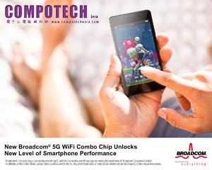 2014 年 2月26日--全球有線及無線通訊半導體創新方案領導廠商博通(Broadcom)公司 (NASDAQ: BRCM) 推出業界首款針對智慧型手機所設計的5G WiFi (802.11ac) 2x2 MIMO(多重輸入與輸出)系統單晶片(SoC),名為BCM4354。此晶片的Wi-Fi效能比目前智慧型手機採用的1x1 MIMO架構高一倍,而且透過無線連線時,可節省25%的功率。此創新產品將於2月24至27日於巴塞隆納世界行動通訊大會(Mobile World Congress)展出。如需更多資訊,請造訪www.connectingeverything.com。