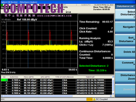 今天,包含洗衣機、冰箱、恆溫器在內的各式各樣商業電子設備,都會產生非連續的傳導放射。有了N9038A MXE EMI接收器,工程師可使用自動耦合設定,將選定的量測頻率,連接到合適的儀器配置及相關CISPR測試限制,以便快速簡單地執行點擊量測。另外,他們還可依照需求設定測試時間(最多2小時),並且設定在偵測到多少次點擊數之後結束量測。