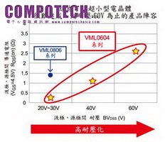相較以往,即使高耐壓也可維持低導通電阻,全新加入耐壓40~60V產品、擴充了產品線。