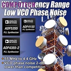 • ADF 4355-2:具有整合式超低雜訊VCO的55 MHz至4.4 GHz