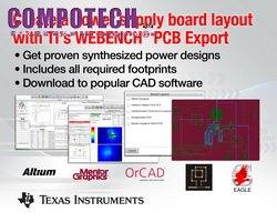 2014年6月16日--德州儀器 (TI) 宣佈為 TI 線上 WEBENCH 電源設計工具新增一項最新特性 — WEBENCH® PCB 匯出。該設計工具不僅可幫助工程師快速創造電源印刷電路板 (PCB) 配置,還可將其匯出至業界領先的電腦輔助設計 (CAD) 開發平台。如欲瞭解更多詳情或開始設計,敬請參訪:www.ti.com/webenchpcb-pr-tw