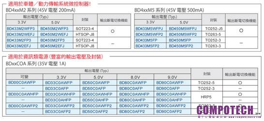 近年來汽車的電源IC隨著汽車電子化及多功能化的發展,逐漸不再追求全能化,而是希望能有可以因應不同狀況的封裝及輸出電流等,又可滿足不同種類用途,涵蓋性廣的系列性產品。