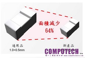 採用新材料和提高構造時散熱性提高,並保證小型化與替換用額定功率為0.1W,是同尺寸通用品的兩倍。並且可輕易取代1005(1.0mm×0.5mm)尺寸,安裝面積可減少64%。