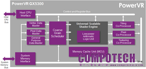 Imagination的PowerVR GPU是行動和嵌入式繪圖的業界標準。新款GX5300核心是以先前的Series5元件為基礎,但顯著增強了效率,可為入門級智慧型手機、穿戴式裝置、IoT和其他佔位面積小的嵌入式應用提供理想的低功耗解決方案。GX5300是以PowerVR的可編程著色器為基礎,亦即分塊式延遲渲染(TBDR)架構,可提供優異的高效能效率以及最低的每訊框功耗。此外,Imagination領先業界的PVRTC技術能確保最小的記憶體佔位面積以及絕佳的影像品質。