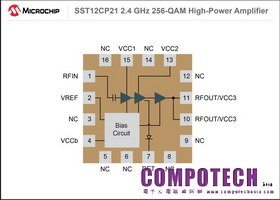 2014年8月26日--全球領先的整合微處理控制器、混合訊號、類比元件和快閃記憶體專利解決方案的供應商——Microchip Technology Inc.(美國微芯科技公司)宣布推出最新的2.4 GHz 256-QAM 射頻高功率放大器 –SST12CP21,為256-QAM 和IEEE 802.11n 系統提供極低的EVM與電流消耗。SST12CP21可在5V電壓、320mA電流消耗時對於採用MCS9 HT40調製和40 MHz的頻寬的1.75%動態EVM提供高達23 dBm的高線性輸出功率。此外,SST12CP21還可在3% EVM下為802.11g/n 應用提供25 dBm的線性輸出功率,消耗電流僅為350mA。這顯著擴大了802.11b/g/n WLAN 和 MIMO 系統的範圍,同時能以極低的電流消耗實現最高的256-QAM資料速率。SST12CP21 頻譜還適用於輸出功率高達 28 dBm 的802.11a/n/ac通訊。該元件進一步縮小了電路板空間,採用小型3 x 3 x 0.55 mm 16接腳QFN封裝,可匹配一個常用的接腳輸出。