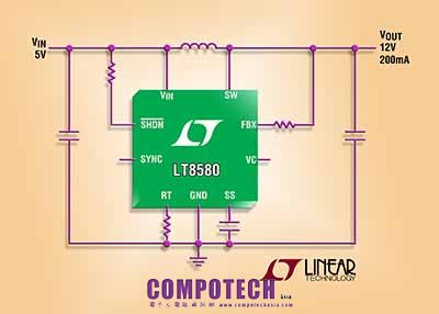 2014年9月16日 –凌力爾特( Linear Technology Corporation )日前發表電流模式、定頻升壓DC/ DC轉換器LT8580 ,元件具備內部1A, 65V 開關,可操作於 2.55V至40V的輸入電壓範圍,適合輸入源涵蓋單顆鋰電池至汽車輸入之應用。LT8580可配置為升壓、SEPIC、或負壓轉換器,切換頻率可透過單一電阻設定或可同步至200kHz 及1.5MHz的外部時脈,以將外部零組件尺寸縮減至最小。結合3mm x 3mm DFN封裝(或MSOP-8E)和精小外部元件,確保了非常精小的接腳佔位,同時可降低解決方案成本。
