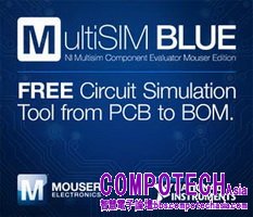 2014年10月9日--貿澤電子 (Mouser Electronics) 宣布正式推出免費電路模擬工具 MultiSIM BLUE,此工具為 NI Multisim Component Evaluator Mouser 版。全球半導體與電子元件授權代理商Mouser,專注於滿足設計工程師的需求,此全球同步上架的最新多合一電路模擬工具,整合了許多強大的功能,包括 PCB 佈局與材料清單(BOM),還能支援設計、模擬、PCB 設計、BOM 匯出及直接下單採購等功能。
