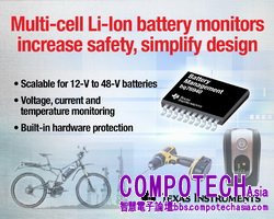 2014年10月14日--致力於亞太區市場的領先零組件通路商大聯大控股今日宣佈,旗下友尚將推出德州儀器(TI)多節電池監控器,可大幅提升電池組安全性,還可縮短12V至48V鋰離子電池及磷酸鋰鐵離子電池的設計時間,能夠充分滿足電動自行車、電動工具,以及能源儲存系統的應用需求。