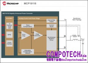 2014年10月22日--全球領先的整合微處理控制器、混合訊號、類比元件和快閃記憶體矽智財解決方案的供應商——Microchip Technology Inc.(美國微芯科技公司)近日宣布推出最新數位增強型類比電源(DEPA)控制器——MCP19118 和 MCP19119 (MCP19118/9)。該元件可為同步降壓DC-DC轉換器提供簡易又高效的類比PWM控制,工作電壓可達40V,並搭配了一個可配置的數位MCU。這是業界首款結合了40V工作電壓和PMBus™通訊介面的元件。這些特點加入了一個內建8位元PIC® MCU核心硬體使其具有可程式化的類比控制迴路功能,如此可實現快速的電源轉換電路開發。這種高整合度和靈活度使其特別適用於電池充電、LED驅動、USB供電規範(USB Power Delivery)、負載點和汽車電源供電等電源轉換應用。