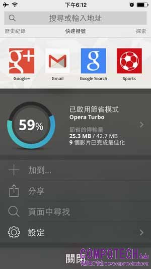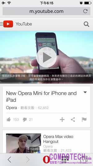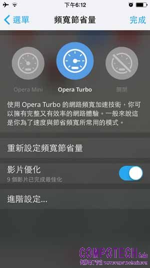 2014年11月6日--iPhone 與 iPad 用戶將可以減少影片看到一半而進行緩衝的畫面!今天Opera 軟體公司為iOS用戶推出Opera Mini 9,在瀏覽器內建影片優化(Video Boost)功能,除了可以減少資料傳輸之外,還可以加速線上影片下載,大幅減少觀看影片時緩衝的次數。這個功能也可以幫助使用非吃到飽行動上網費率的用戶,延長資費方案的使用壽命,並減少看影片時卡在緩衝畫面的窘境。